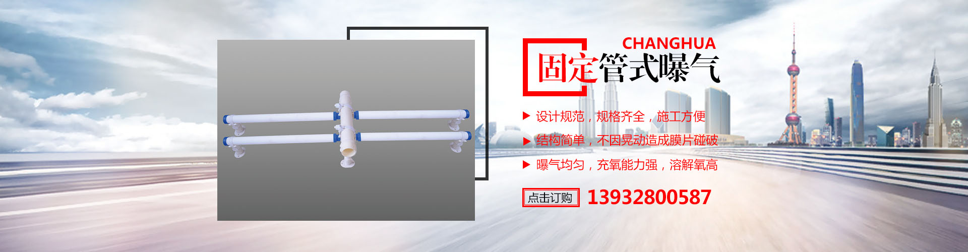 衡水昌华环保设备制造有限公司(原衡水市桃城区慈爱源污水处理曝气设备厂)专业生产环保设备及其配件。我公司生产各种型号微孔曝气管、微孔曝气盘、聚氨脂曝气管、高密度聚乙烯曝气管、无阻塞大通气量旋流曝气器。我公司生产的微孔膜曝气管(膜片)、曝气盘(膜片)、均采用美国、德国和荷兰技术的高强度、高弹性、高抗撕裂、强抗老化的硅橡胶、三元乙丙橡胶和聚氨酯。曝气管(盘)骨架均采用高强度、抗老化的ABS、增强聚丙、UPVC等工程塑料,坚固耐用。